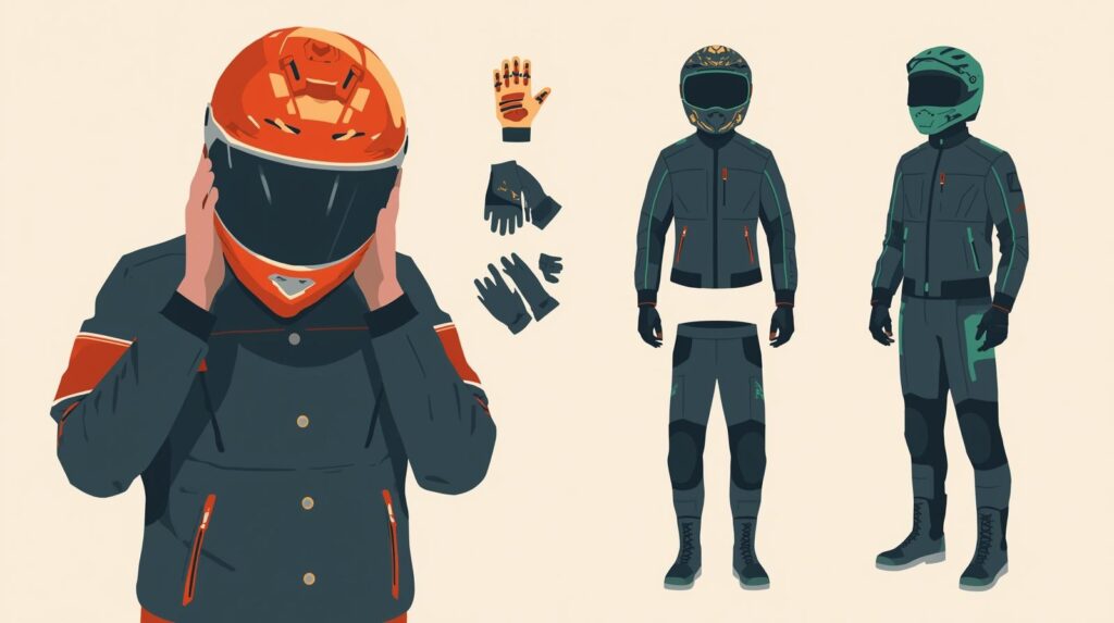 Put on a DOT-approved helmet, gloves, jacket, long pants, and sturdy boots. Protective gear reduces injury risk and improves comfort while riding.