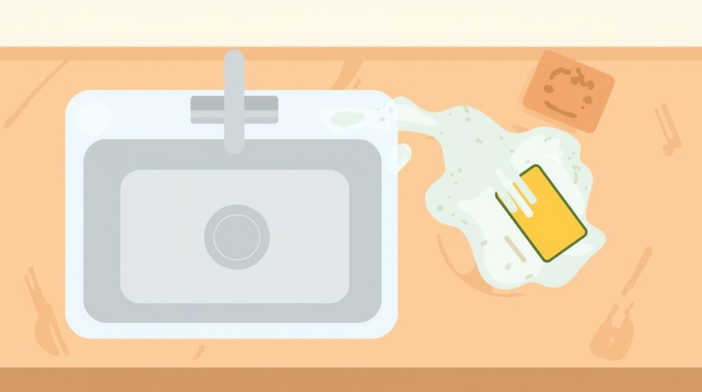 Empty and rinse the sink, wash the sponge, and wipe down the counter area to finish.