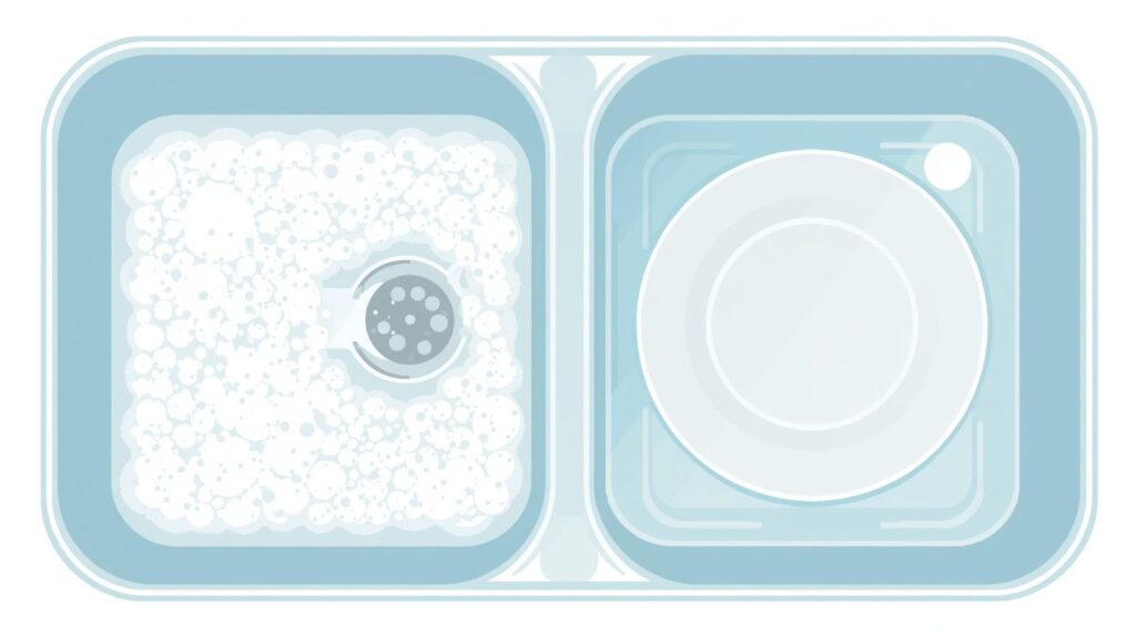 Fill one side of the sink or a large basin with hot water and a few drops of dish soap. Fill the other side with clean water for rinsing.