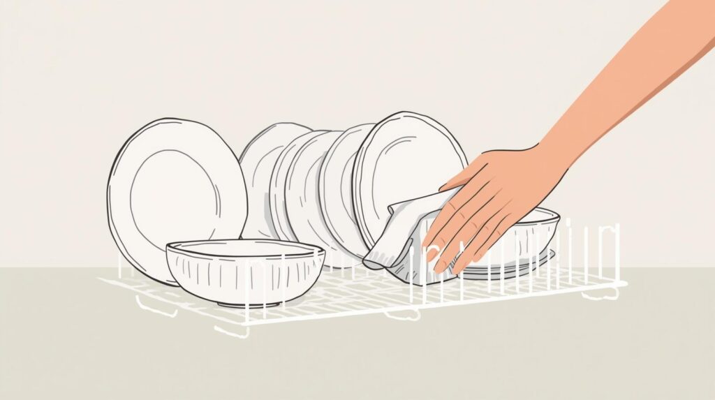 Place dishes on a drying rack to air dry, or use a clean towel to hand dry them.